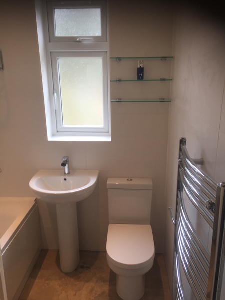 We work on all types of properties and can install a simple bathroom suite or a much more complex suite depending on your need and requirements. Here is a sample of some of our work. We can work in large spaces or if you need to squeeze a toilet into a small space, we can work on that too.