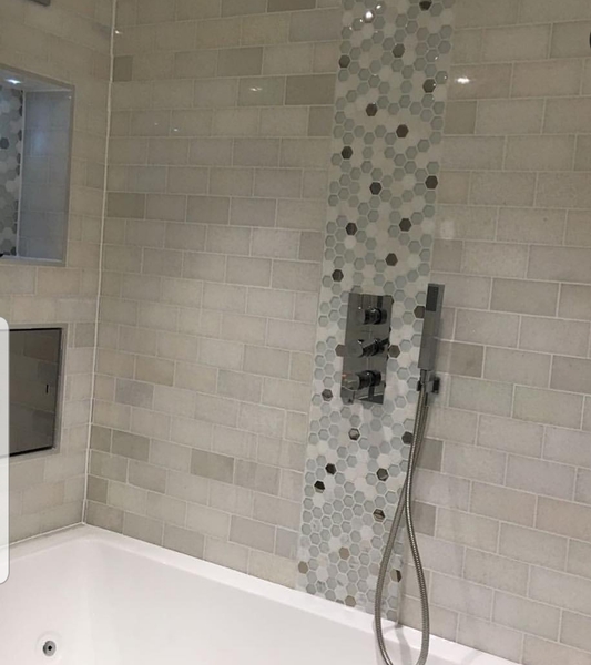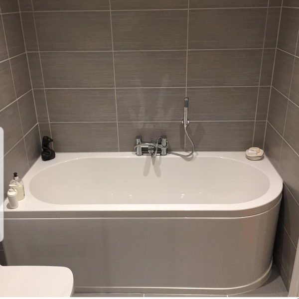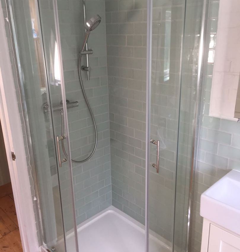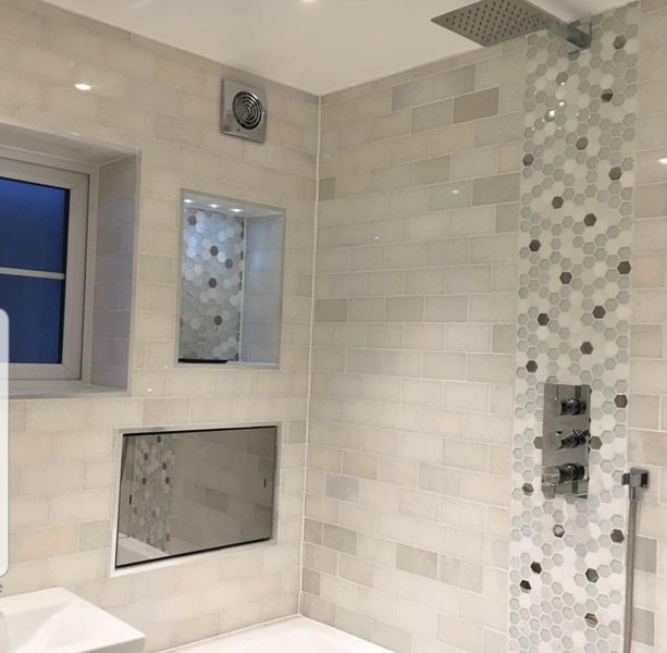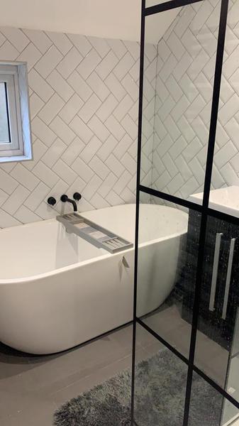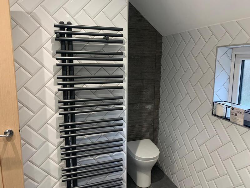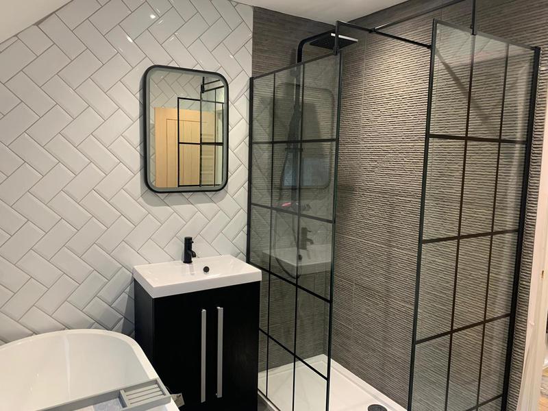 I love the grey tiles our client chose for this refurbishment.